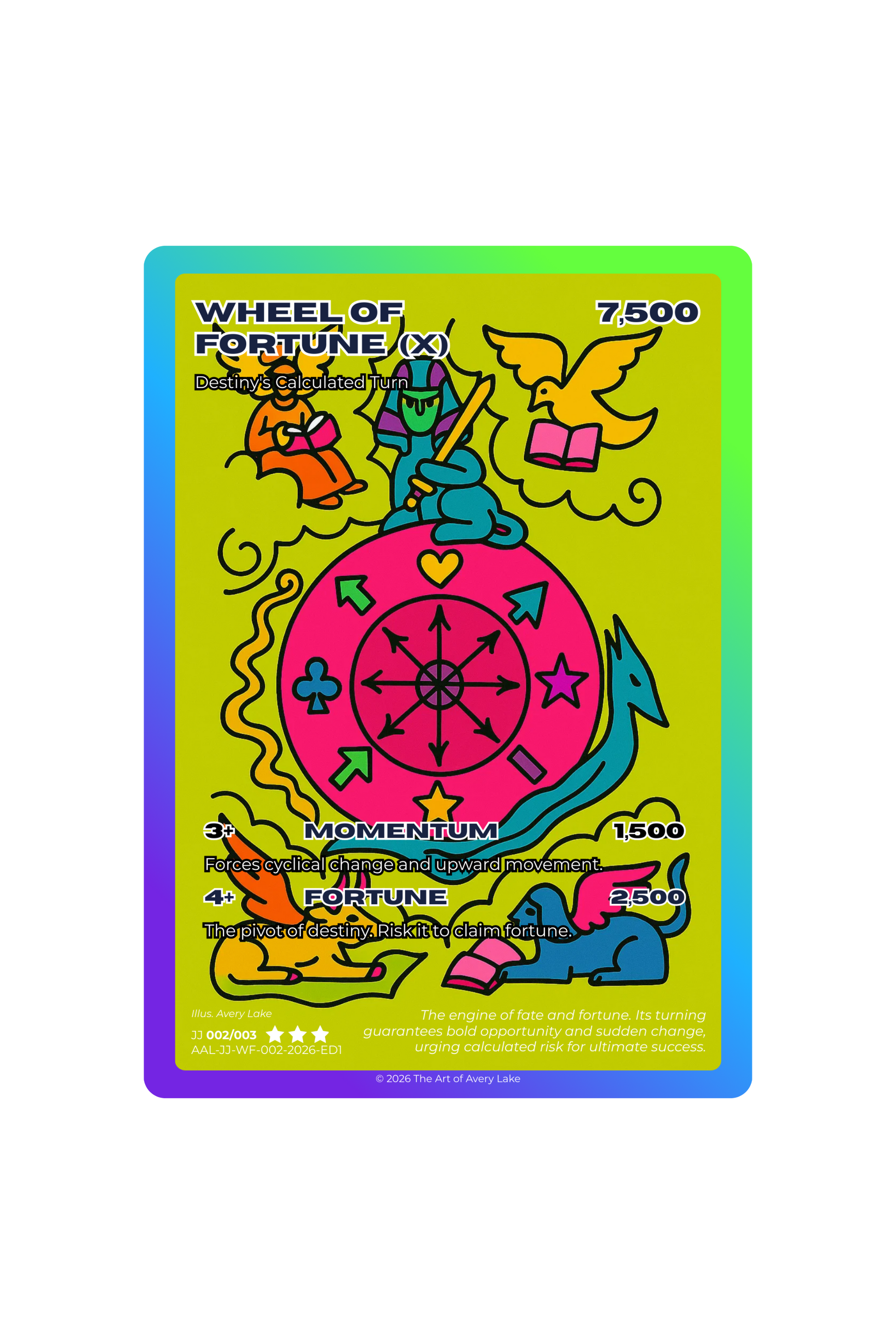 Wheel of Fortune (X) captures destiny's calculated turn—the moment when fate meets algorithm. Chance and predetermination spin together, now measured and made tradeable. What was once a mystery becomes a market.